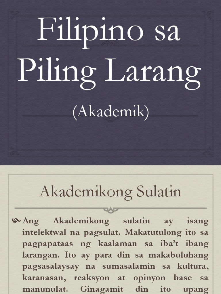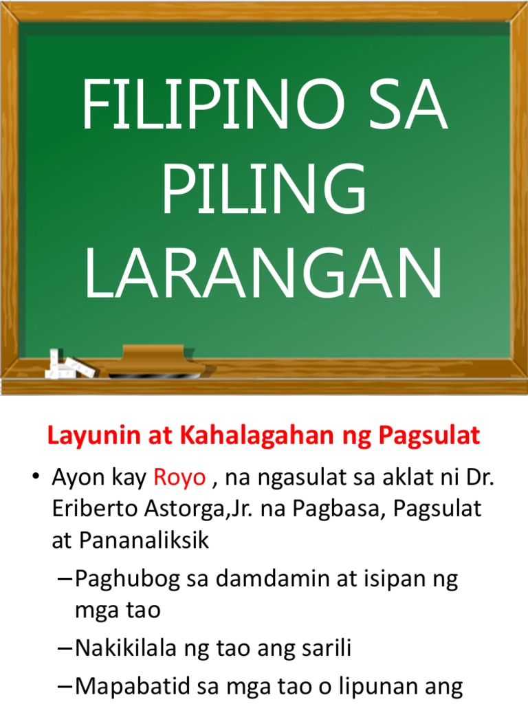 FILIPINO SA PILING LARANGAN. Dahil dito nagkakaroon ng matalinhagang ugnayan kung saan tayo ang nakalilikha ng patunay sa ating kaakit-akit na. Tappa at Darelyn Joy B.