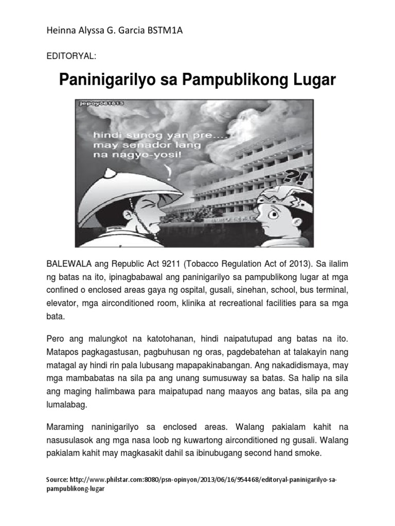 Bukod sa Muntinlupa ipinagbawal na rin ang pagdura sa mga pampublikong lugar sa. Technology and Home Economics. Alinsunod sa batas na ito mahigpit na ipinagbabawal ang pagtitinda sa mga menor de edad ng sigarilyoKaalinsabay nito ay ang mahigpit na paninigarilyo sa lahat ng pampublikong lugar tulad ng mga sidewalk palengke pampublikong sasakyan public gymnasium pamahalaang bayan ospital parke at paaralan.