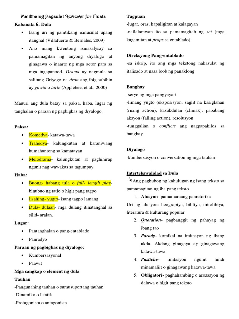 Binubuo ito ng limang tula isang dula at maikling kwento na naging pangunahing kahilingan ng nasabing klase. Malikhaing Pagsusulat Reviewer Finals Docx Pagbasa At Pagsulat Ng Dula A Kahulugan At Uri Ng. Tutuon ang klase sa matalas na pagsusuri sa mga teknik at worksyap ng mga burador ng.