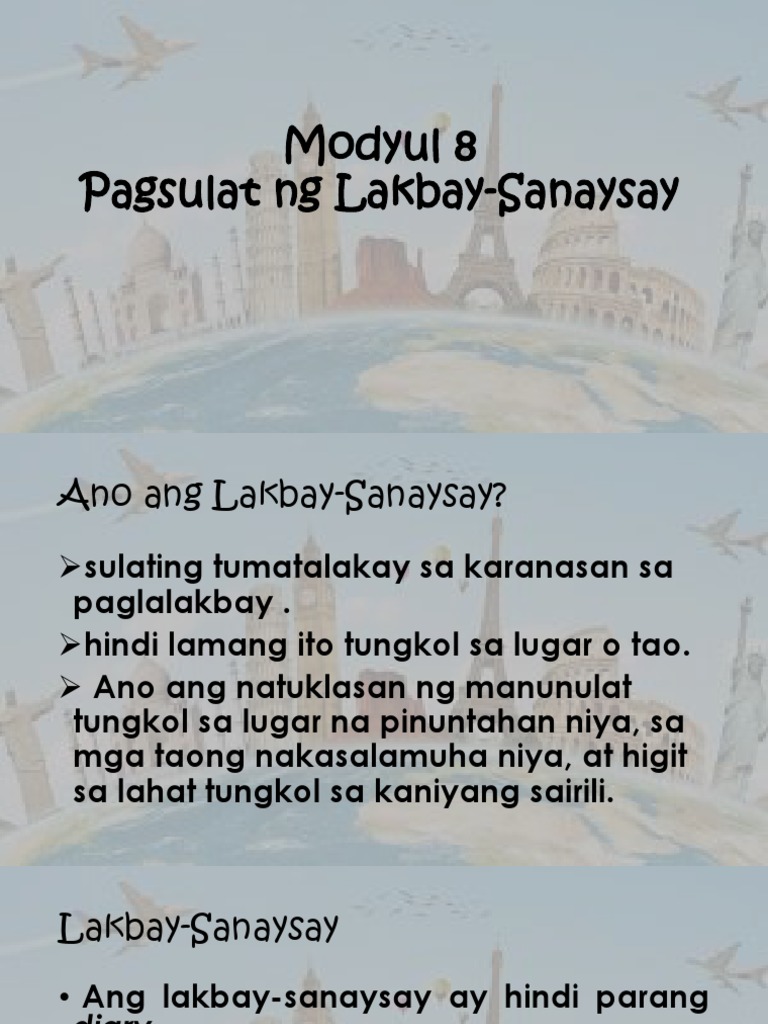 Higit sa lahat ito ay tungkol din sa sarili sapagkat ang karanasan ng tao ang nagbibigay-kulay sa pagsulat ng lakbay-sanaysay. Ang mga kopya ng Staff Report para sa unang pagdinig ng publiko ay bukas para sa mga.