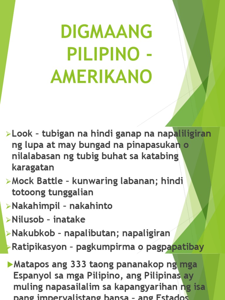 Maging mga lupain at teritoryo ay inaangkin kaya nagkaka-digmaan. Ang Digmaang Pilipino Amerikano ay tinukoy din bilang Digmaang Pilipino Amerikano Digmaang Pilipino Pagkagulo ng Pilipinas o Tagalog Insurgency Filipino. The correct answer was given.