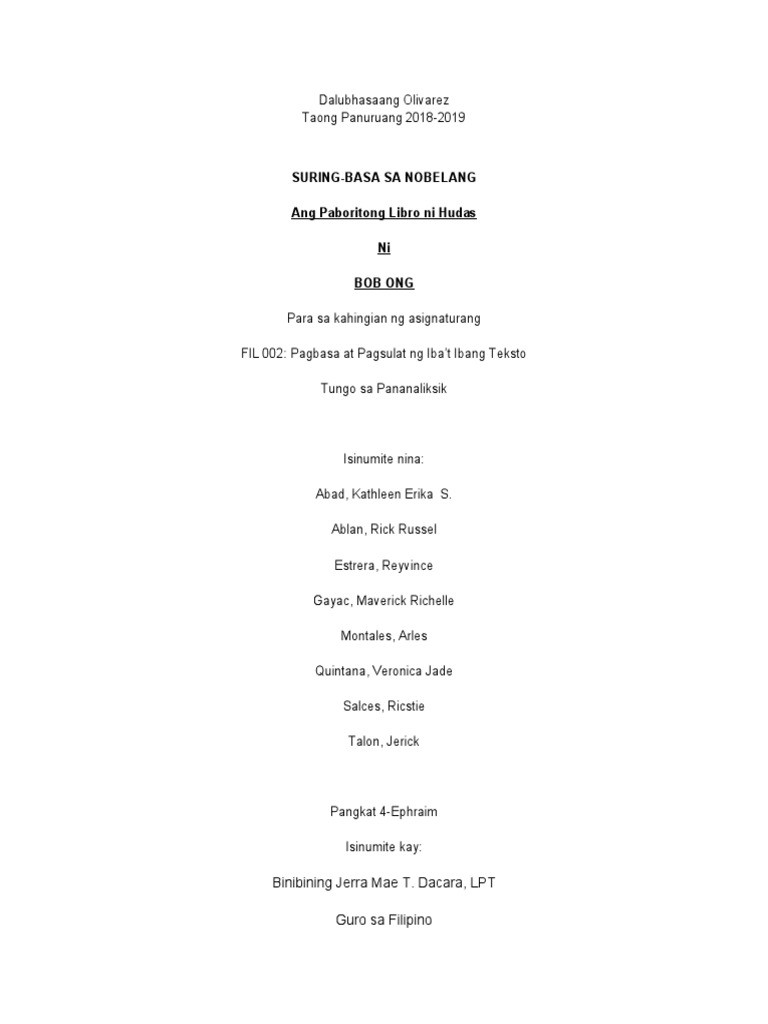 426951190 Suring Basa Sa Ang Paboritong Libro Ni Hudas Ni Bob Ong Docx