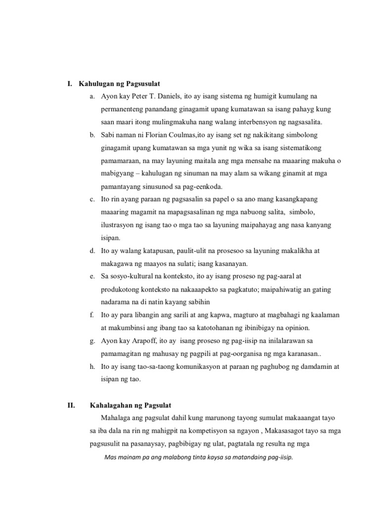 Marami ang nagsasabi na hindi na mahalaga kung mali-mali ang grammar mo sa paghahayag ng iyong gustong sabihin basta raw ba naiintindihan ang gustong mong sabihin. San pamamagitan ng pagsulat nailalahad ang mga ideya pananaw at saloobin. Iba pang Kahalagahan ng Pagbasa 1.