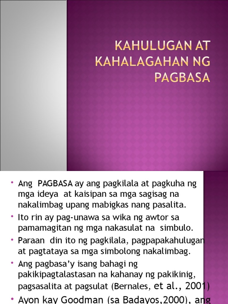 Kahulugan At Kahalagahan Ng Pagbasa Autosaved