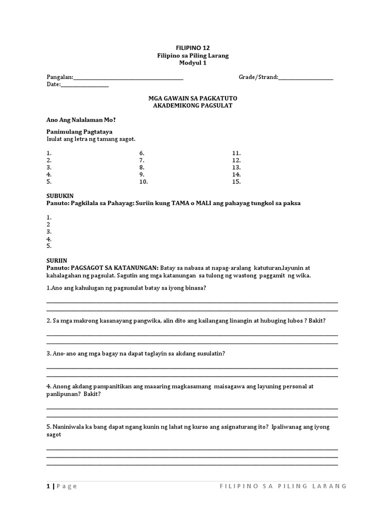 Nalilinang nila ang mga kasanayan sa. Ito rin ay pag-unawa sa wika ng awtor sa pamamagitan ng mga nakasulat na simbulo. Ang layunin ng akademikong pagsulat ay pataasin ang antas ng kaalaman ng mga mag-aaral sa pagbasa at pagsulat sa ibat ibang disiplina o larang.