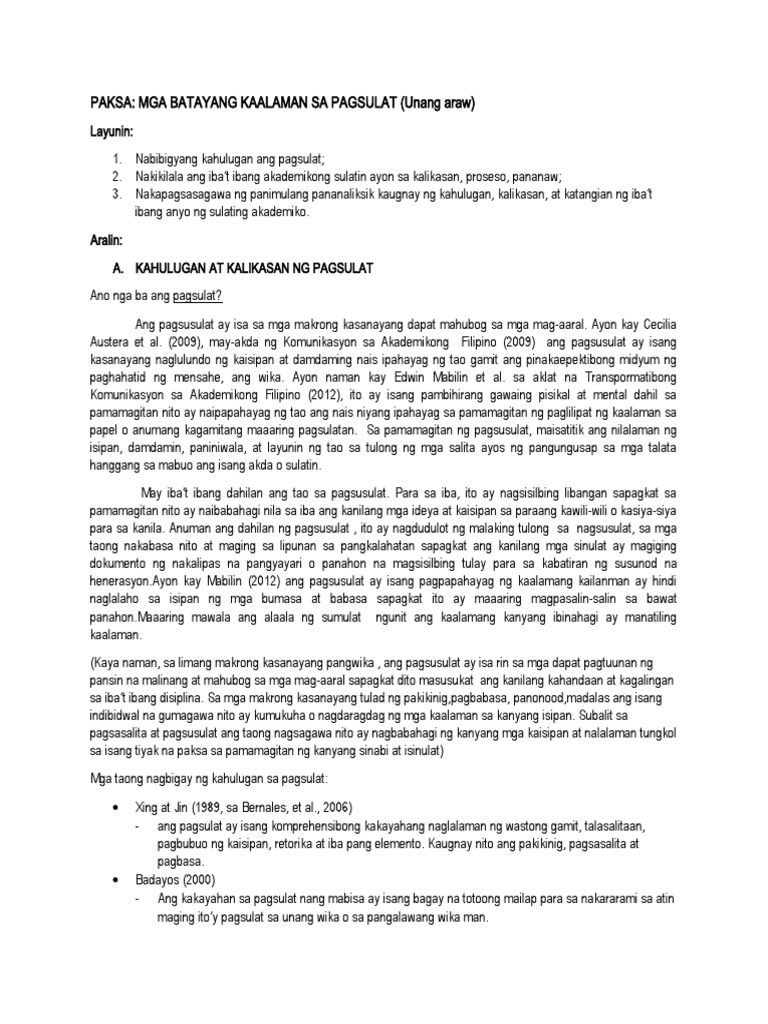 Pagsulat Sa Filipino Sa Piling Larang 1 Studocu