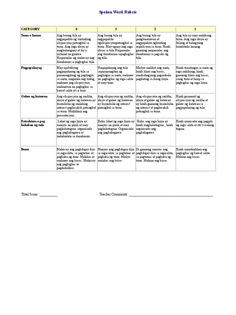 Save Save Rubrics Para Sa Pagsulat Ng Tula For Later. BATAYAN sa PAGPILI ng Mananalo. Ang Komiti ay magbibigay ng sulatang papel bago magsimula ang paligsahan kayat magdala lamang ng panulat.