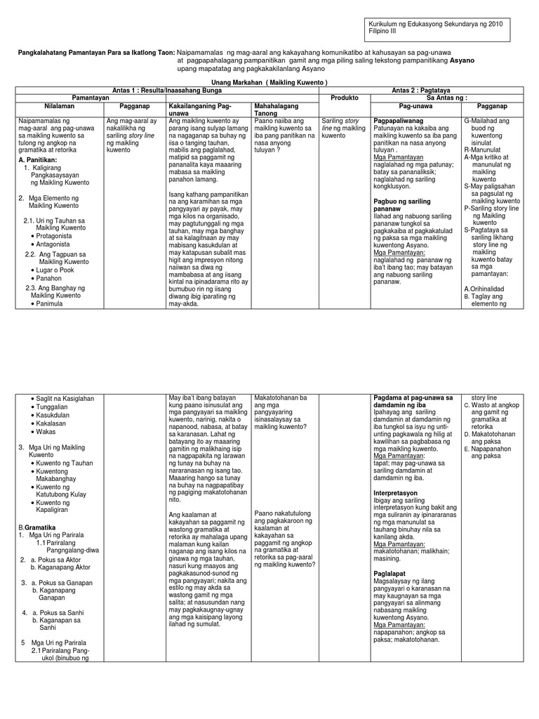 Sa isang kuwento ang bilang ng tauhan ay umaayon sa kaanyuan ng pagkukuwento. Apr 16 2019 - Banghay-Aralin sa Filipino IV Panunuring Pampanitikan I. Bilang pagtupad sa nilalaman ng kasunduan sa Biak-na-Bato ano ang ginawa ni Emilio Aguinaldo.