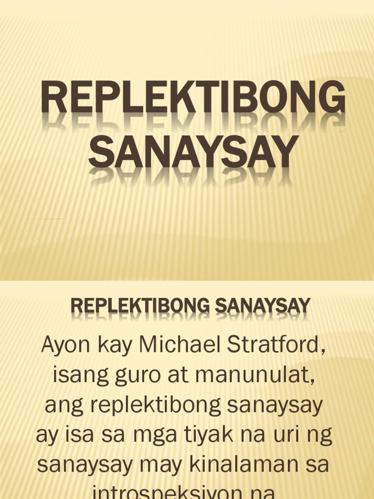 View PAGSULAT NG REPLEKTIBONG SANAYSAyppt from ENG 101 at Dei Gratia School. Enjoy the videos and music you love upload original content and share it all with friends family and the world on. Magkaroon ng isang tiyak na paksa o tesis na.